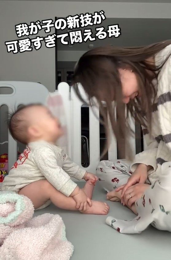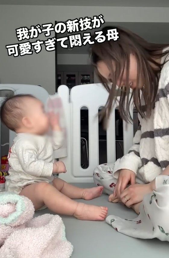 この投稿に「可愛すぎて永遠に見てられる」「勝手に頬が緩んでいく かわいすぎる」「2人ともかわいすぎてもう幸せ ずっと見てたい」「ママがしっかりくらってておもろい」「可愛すぎて涙出た」と親子の様子にほっこりするファンが続出していました。