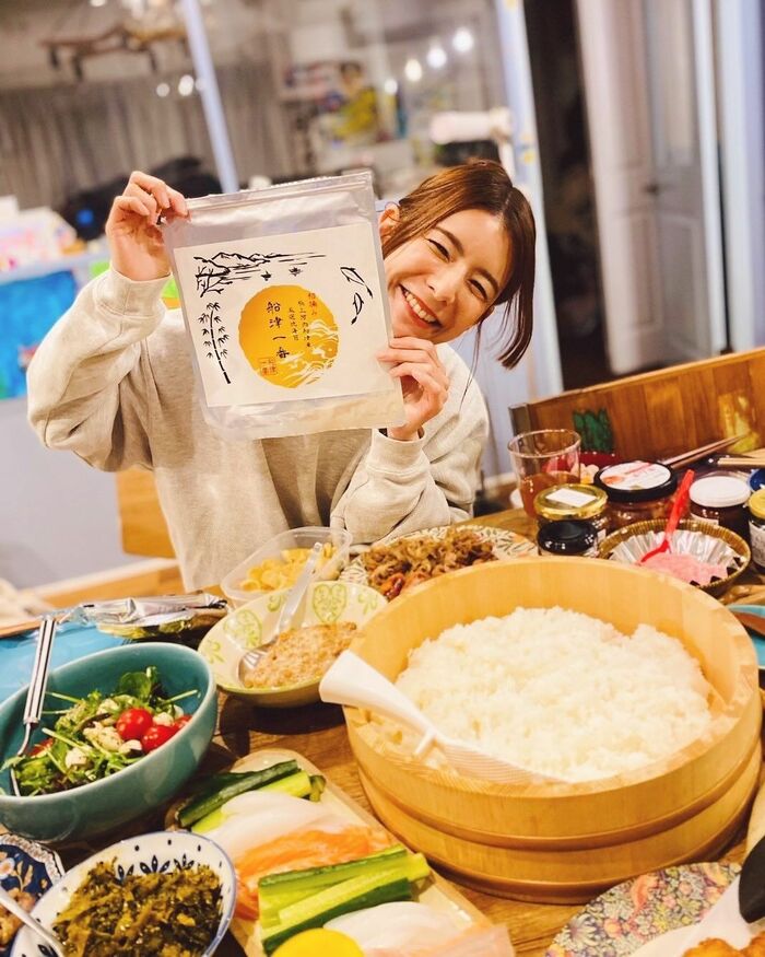 スザンヌさんは、「河内の海苔がパリパリで美味しい!@kawachibase_ryueisou(KAWACHI BASE-龍栄荘-) で買って帰ってきたの♡ 子どもたちも溢れるほど巻いていっぱい食べてくれた!」