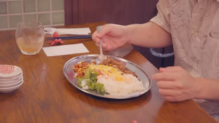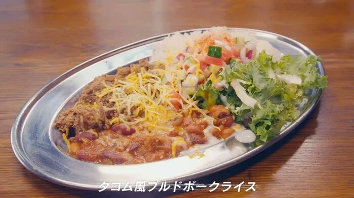 イチさん:お待たせしました。タコム風プルドポークライスです。
