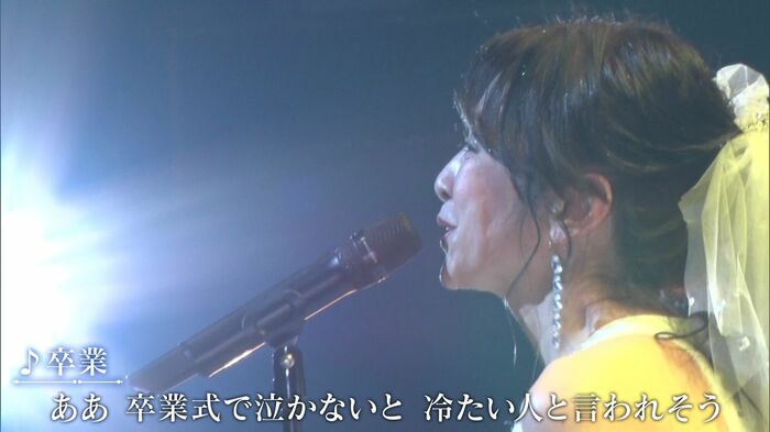 デビュー曲『卒業』を歌い始めると、感極まって涙しながらも歌いつづけた斉藤さん。