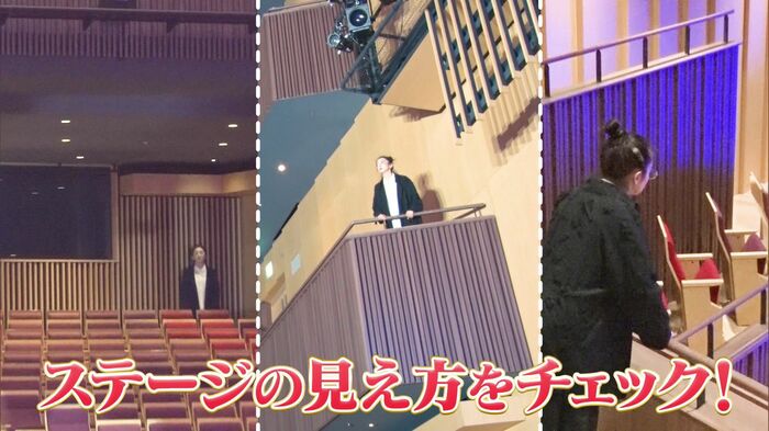 客席では、あらゆる場所からステージの見え方をチェック!1階から3階まで足早に確認していきます。