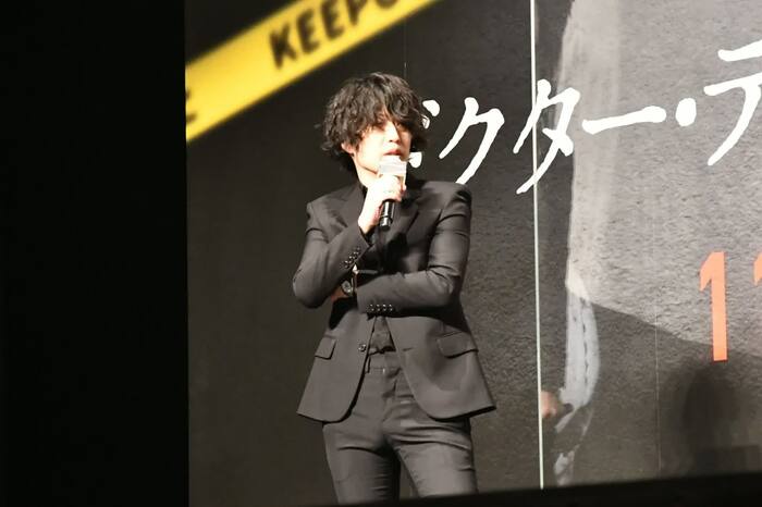 綾野が一度ステージ裏に下がると、続いて[Alexandros]がライブで主題歌「Beast」を披露。本作のために書き下ろされたクールでソリッドなロックナンバーを、熱いパフォーマンスで届けた。