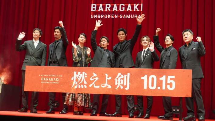 9月9日(木)、映画「燃えよ剣」の完成報告イベントが行われ、岡田准一、柴咲コウ、鈴木亮平、山田涼介、尾上右近、山田裕貴、伊藤英明、原田眞人監督が登壇した。