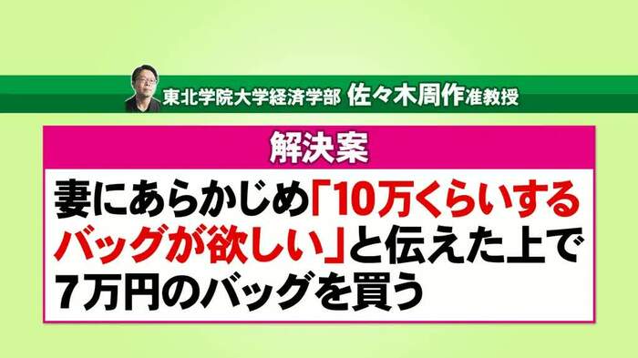 千秋は「本当は14万円だけど、セールで7万だから今欲しいと主張すれば許せるかも」とアドバイスしたが、佐々木先生によるとそれは「参照点をずらす」という「行動経済学」に基づいた考え方に沿った解決策だという。