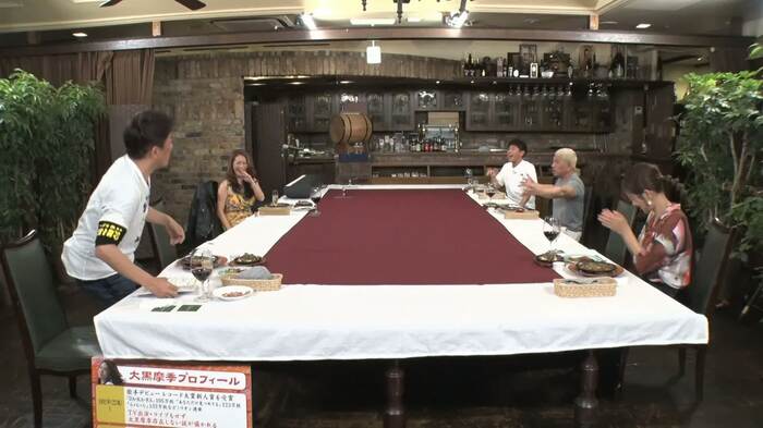 この指摘に一同大ウケ。大黒はノリ良く、目の前にあるサイコロステーキを手づかみで食べて見せた。
