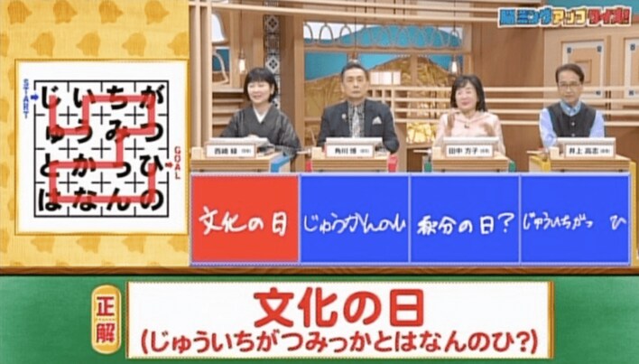 ヒント。ある祝日にまつわる問題です。ちなみに、毎年この日の天気は「晴れ」が多いと言われています。