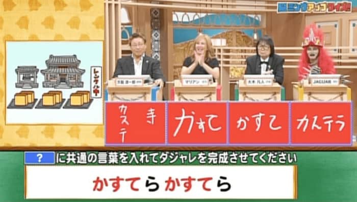正解は「かすて(カステラ貸す寺)」。見事全員正解でした。