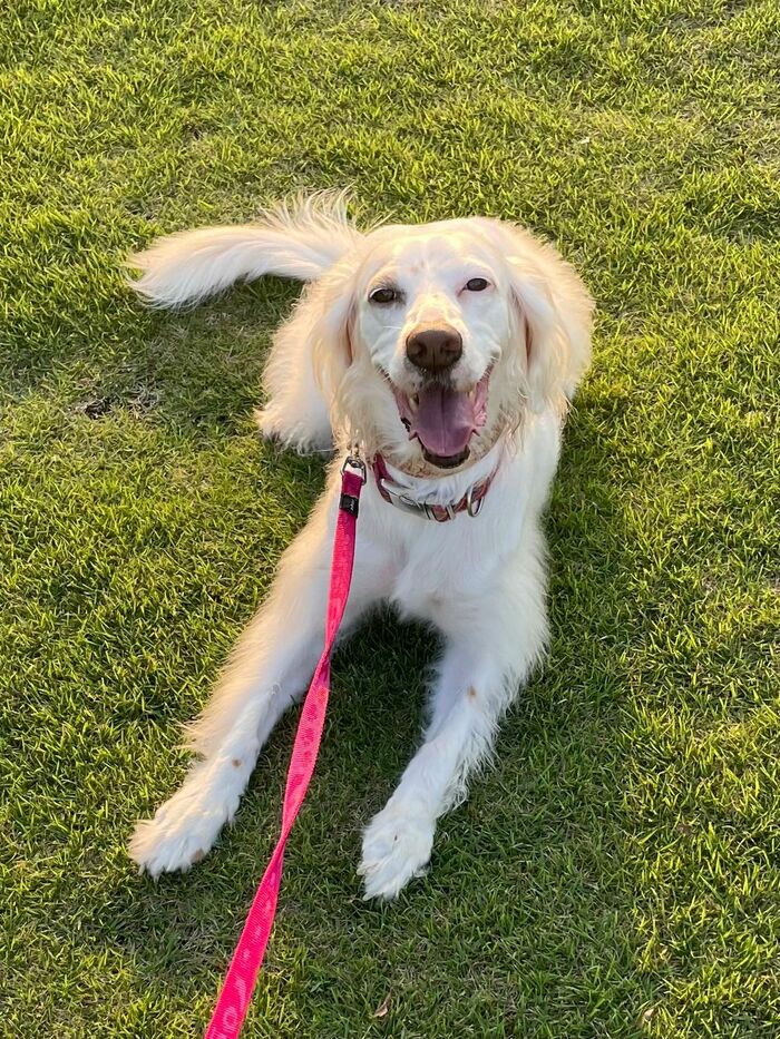 とある家庭で暮らす、イングリッシュ・セッターの麦ちゃん。