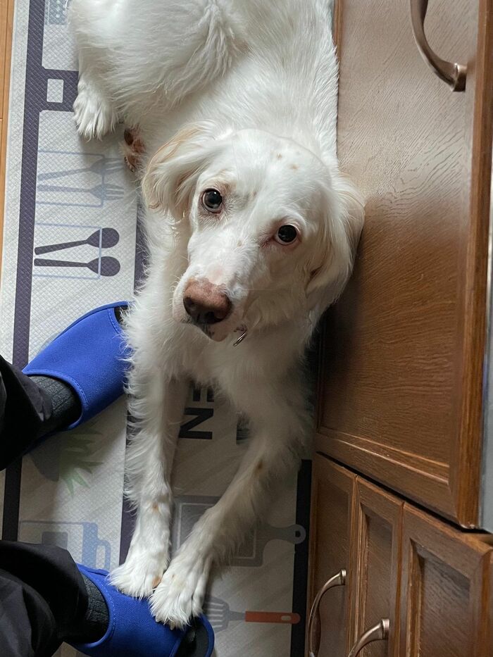 台所に飼い主が立っているときには、足元に座ってじっと見つめたり、かわいらしい姿を家族にたくさん見せてくれます。