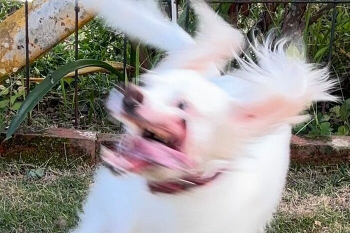 思わず目を疑ってしまう1枚ですが、この写真は庭で遊ぶ麦ちゃんを飼い主が撮影しようとしたものの、猛スピードで駆け抜けるあまり、カメラで追い切れずにブレてしまった「下手くそ」写真だといいます。