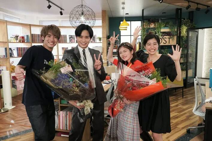 このたび、ドラマの舞台となったファッション誌「ザ・モスト」編集部で、W主演の中島健人と小芝風花がそろってクランクアップすると、すべての撮影が終了。一足先に撮影を終えていた赤楚衛二、佐久間由衣が祝福に駆け付けた。