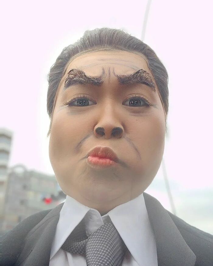 眉毛を増量し、さらに鼻の穴も黒く塗りつぶしています。