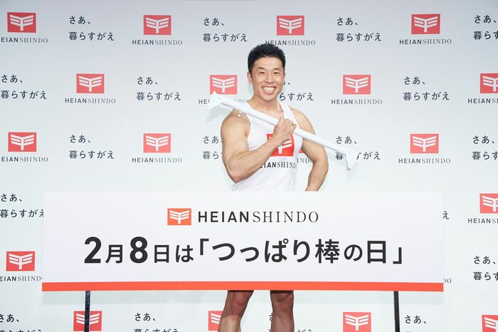2月8日、なかやまきんに君が「つっぱり棒の日」記念発表会に出席しました。