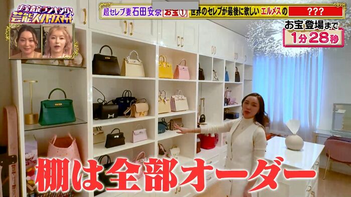 石田さんは、大好きな「エルメス」のバッグを飾るための部屋があると紹介しました。
