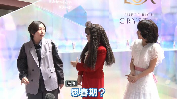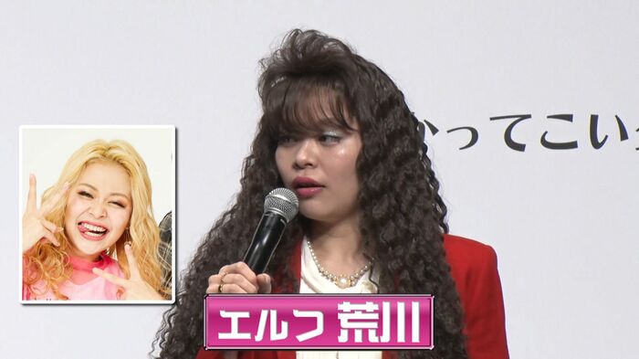 いつもはギャルファッションで登場するエルフの荒川さんですが、この日はバブリーヘアで登場しました。