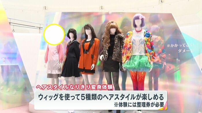 実は今回のイベント、見るだけでなくウィッグを使って過去にはやった5種類のヘアスタイルが楽しめる「なりきり変身体験」ができるんです。