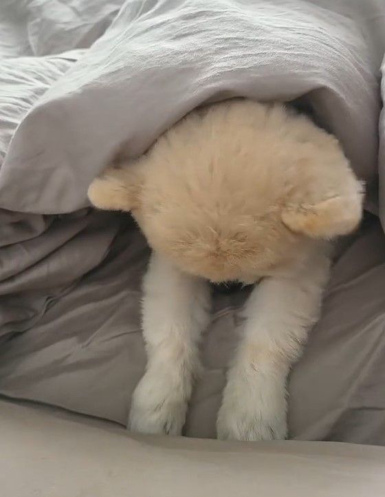 全く顔を上げようとしないマメすけくんは、もぞもぞと布団の中で動いたあと、そのまま前足で顔を隠すようにうずくまってしまいました!