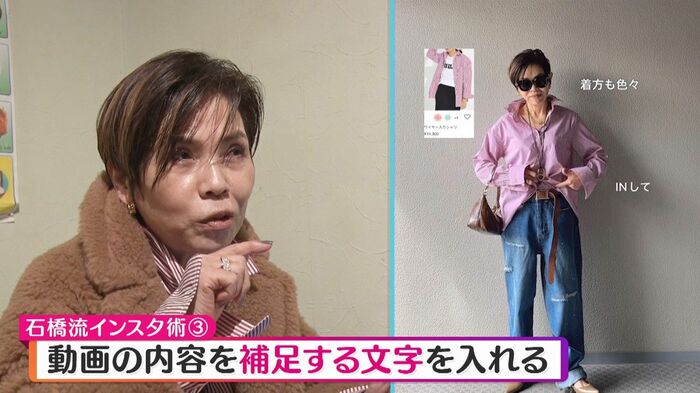 フォロワーは、石橋さんの投稿を見て、60代でもカラフルなコーディネートや露出する服を着てもいいのだと「年を取ることに希望が持てた」と、その魅力を語ります。