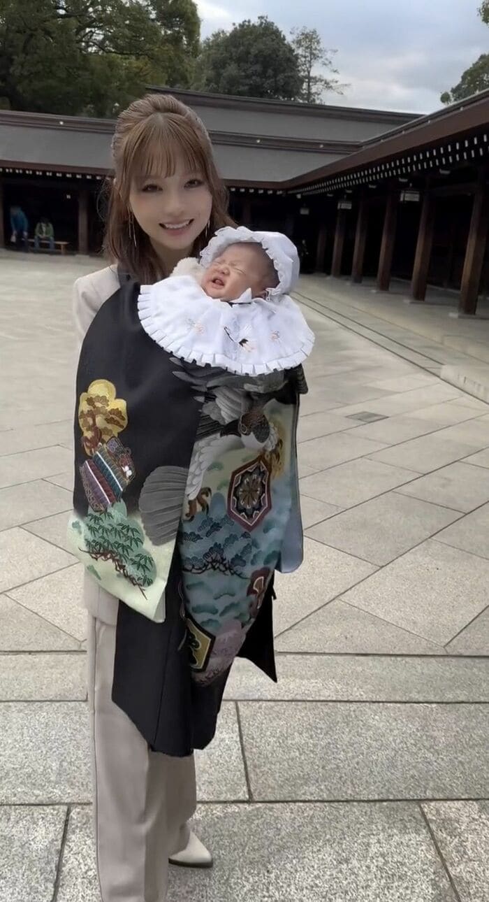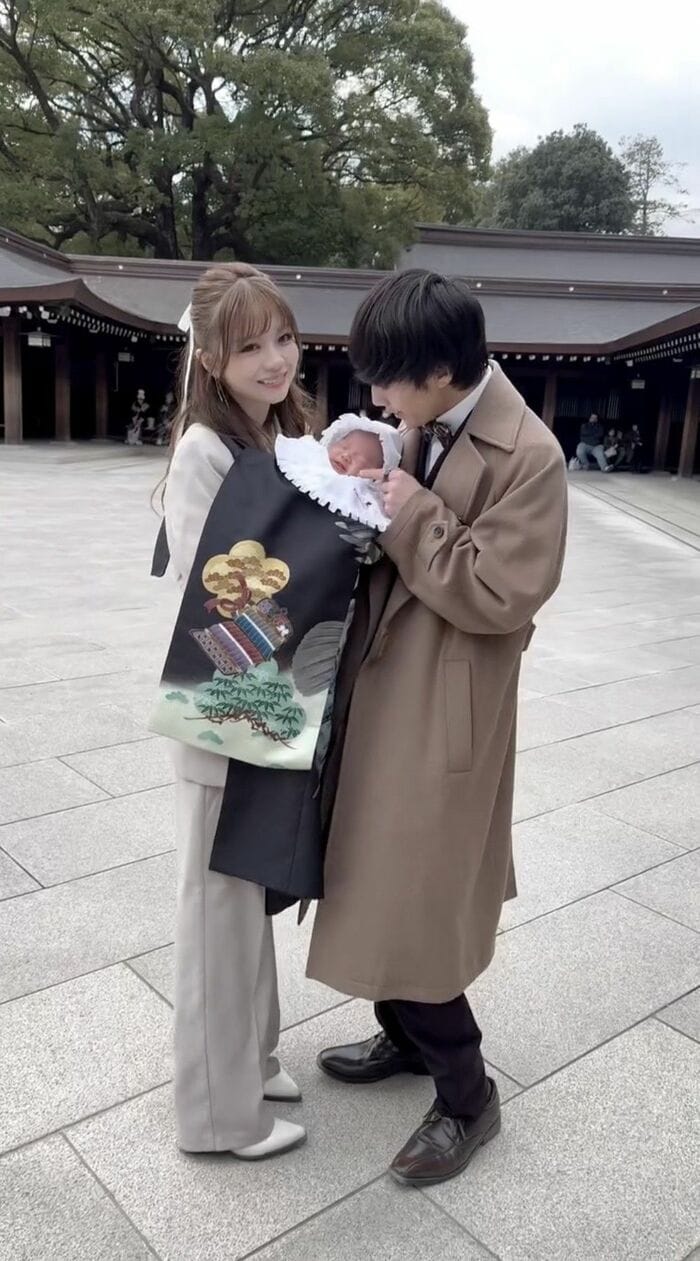 最新投稿では「無事に産まれたことを感謝して、神社に行ってきたよ〜!」とつづり、夫のぎしさんとともに我が子“ミニぎし”を連れて、お宮参りへ訪れた様子を公開しています。