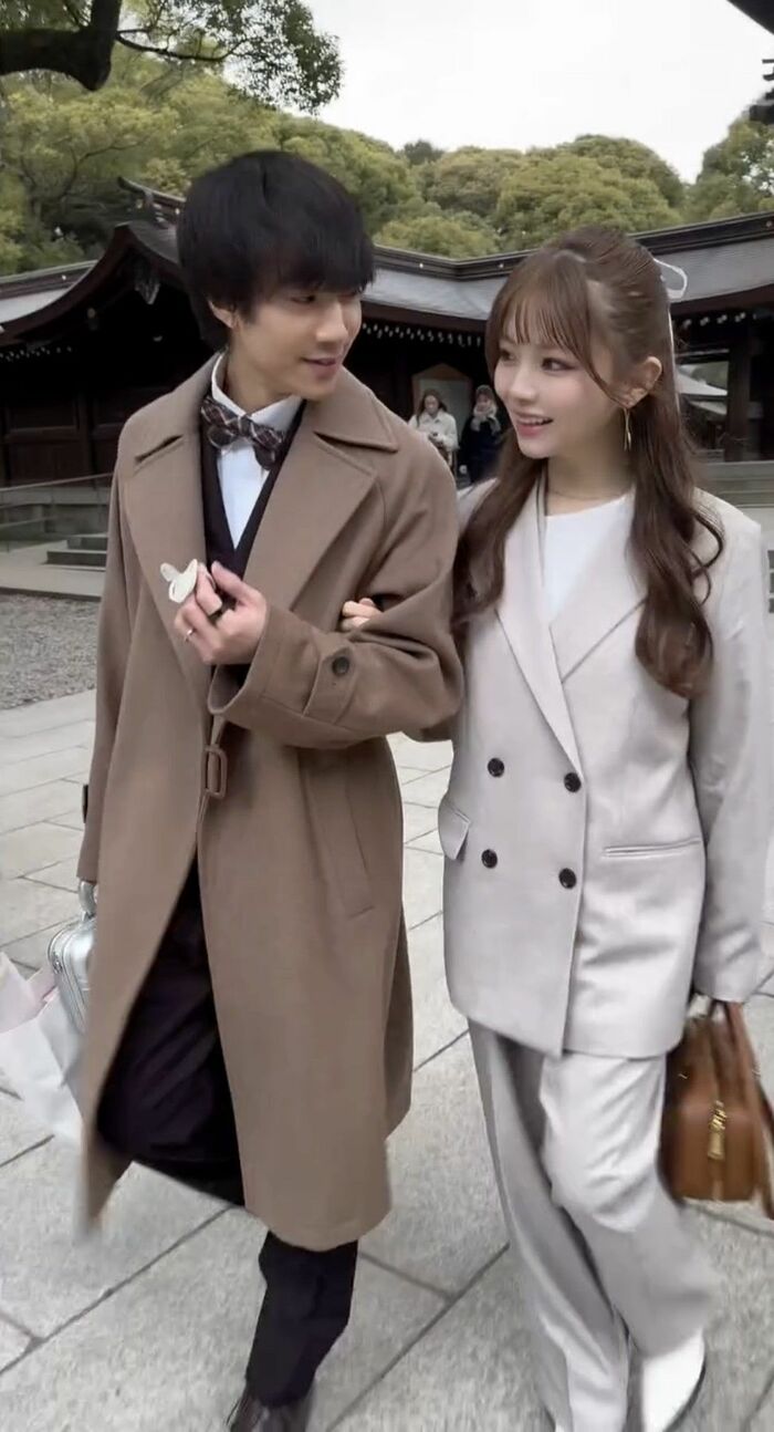 さらに、ぎしさんと腕を組み、楽しそうに境内を歩くラブラブショットも披露しており、なんともほっこりしてしまいます。