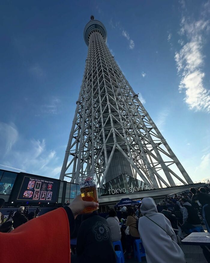 MLB開幕戦に日本中が湧いた18日、井戸田さんは東京スカイツリーで開催中のMLB東京シリーズを盛り上げるイベント「MLB Tokyo Series Fan Fest」のパブリックビューイングに登場。そんなお父さんのお仕事見学に来た“ベビバーグ”は、初スカイツリーなんだとか。