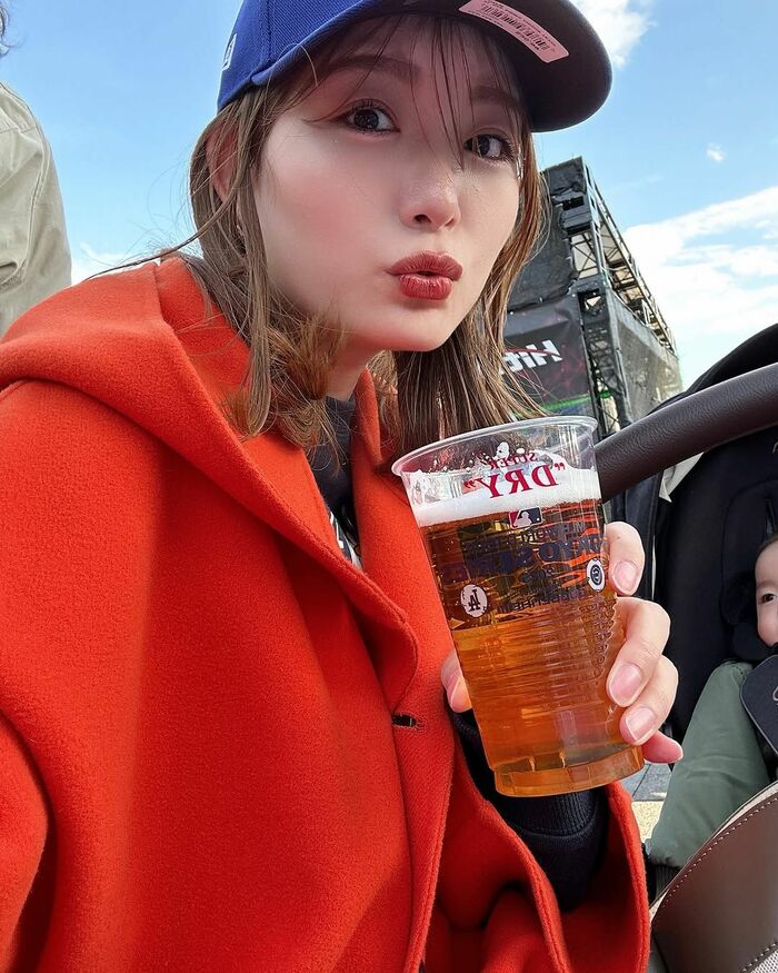 蜂谷さんは「トークショー見ながら母は、MLB開幕記念ビールで一杯いただきました笑」とビール片手にイベントを楽しむ姿を披露しました。