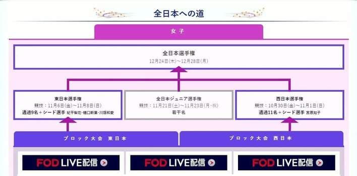 今シーズンは、 FODにて、フィギュアスケート各地方の「ブロック大会」全6大会、「東日本選手権」「西日本選手権」、さらに「全日本ノービス選手権」、「全日本ジュニア選手権」を、LIVE配信することが決定している。