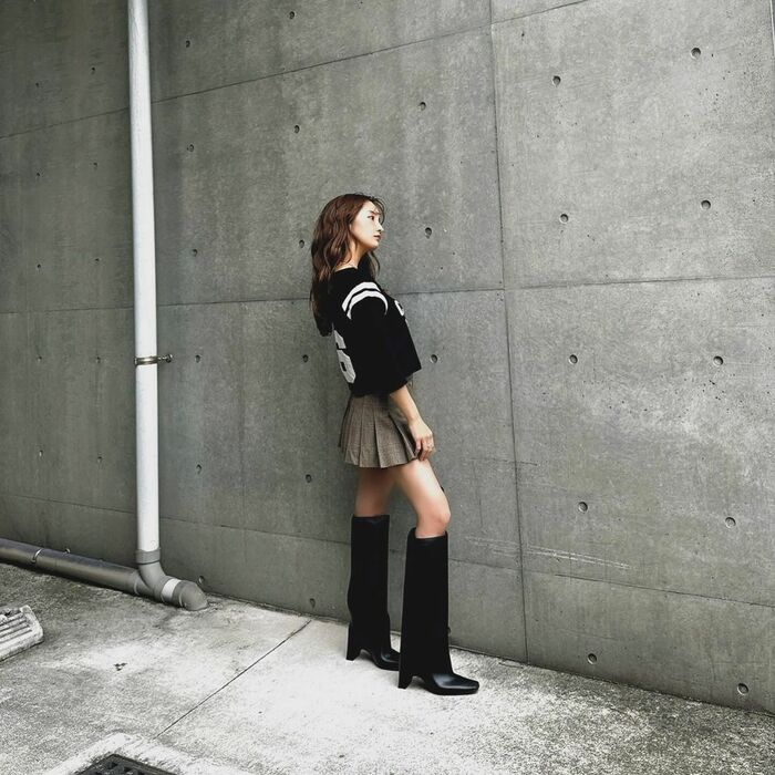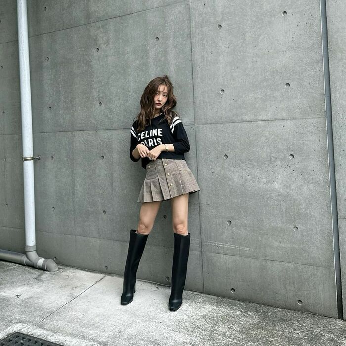 この投稿には「超かわいい」「スタイル良すぎ!!憧れます!!」「ミニスカとロングブーツからの絶対領域」などのコメントが寄せられています。