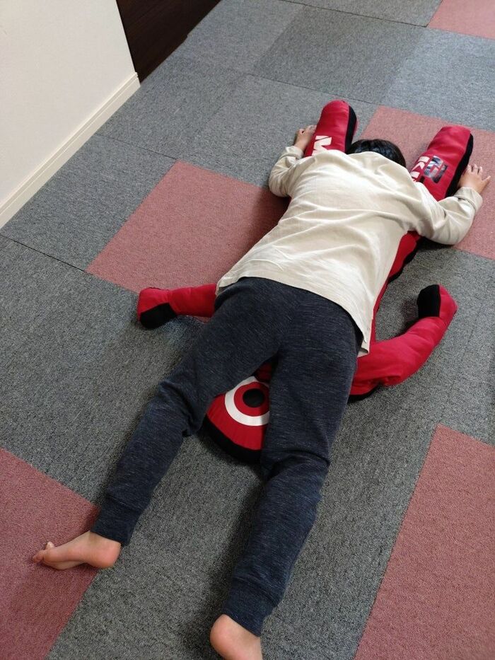 他にも、学校が休みだったという次男が、退屈のあまり、うつ伏せで床にごろんと寝そべっている姿も!