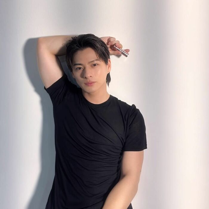 別の写真では、リップを手にした腕を上げ、上腕二頭筋を見せた色気あふれる姿を披露!