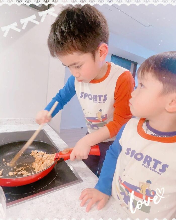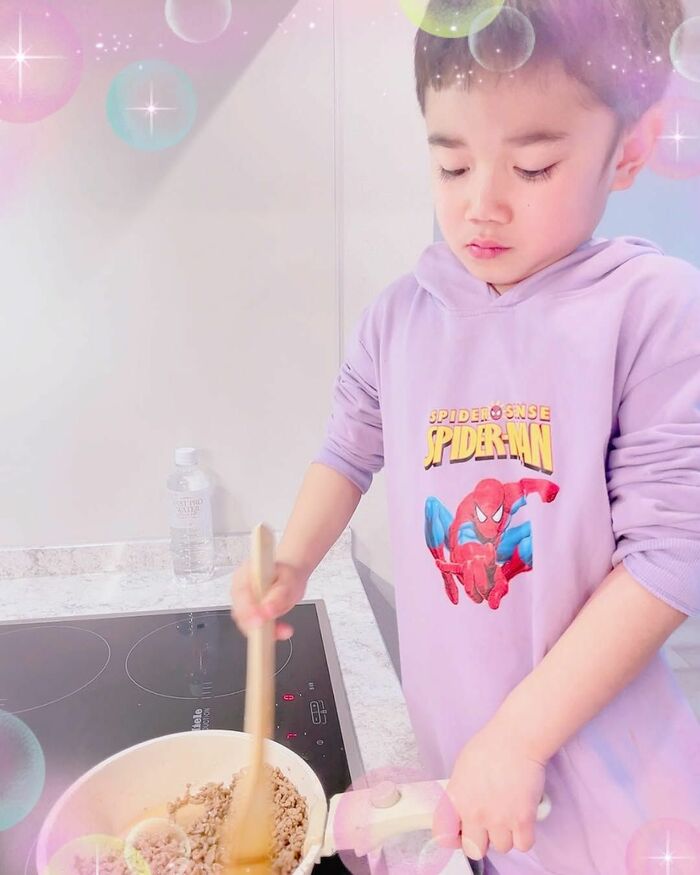 普段からお兄ちゃんとして弟たちの面倒を見てくれている“バンビーノくん”ですが、今回の平さんの投稿では「バンビーノクッキング」というコメントし、夜ご飯を作ってくれたことを報告しました。
