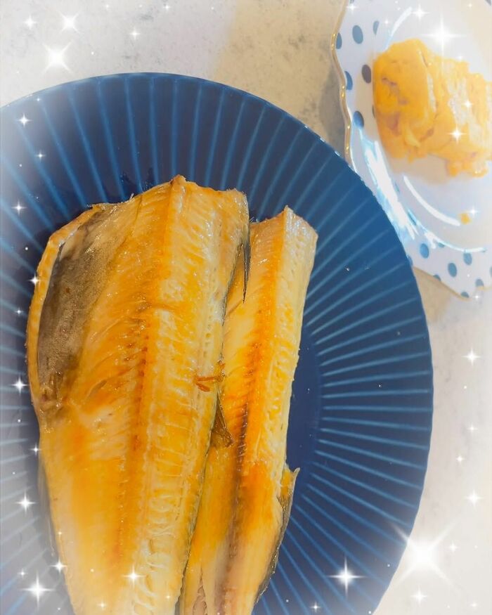 魚は焼き目がきれいにつき、卵焼きもしっかりときれいな形に焼かれていて、“バンビーノくん”の料理の才能が発揮されているのが分かります。