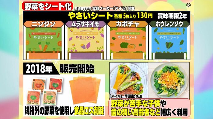 長崎県の食品メーカー「アイル」が開発したのは、「やさいシート」。
