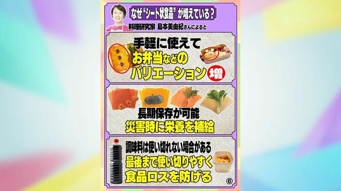 料理研究家の島本美由紀さんによると、シート状の食品が増えている理由として、以下のようなものがあるといいます。