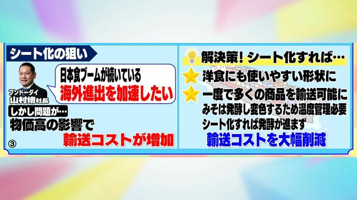 世界初!「しょうゆ」「味噌」シート化で輸送コスト減