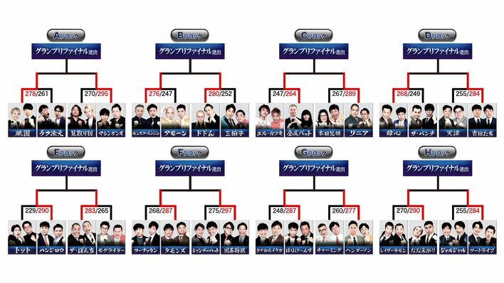 トーナメントを勝ち進んだのは、祇園、マシンガンズ、モンスターエンジン、ドドん、金属バット、リニア、母心、吉田たち、ハンジロウ、ザ・ぼんち、タモンズ、囲碁将棋、はりけ~んず、ヘンダーソン、ななまがり、ツートライブの16組。