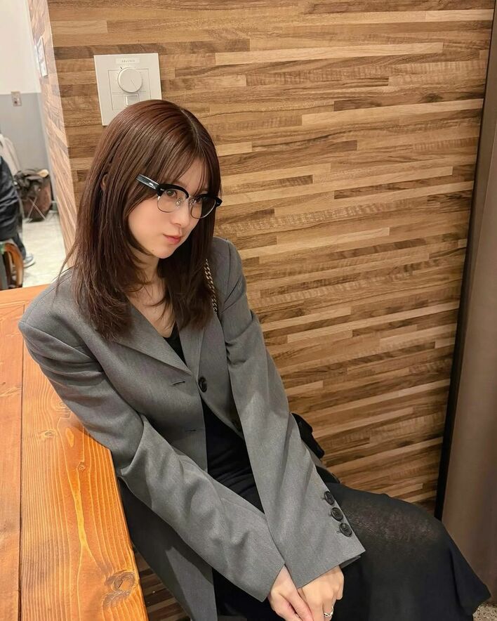公開された写真には、グレーのジャケットに、黒ぶちのメガネをかけた生見さんが口をとがらせてポーズを決める様子が!メガネをかけていて普段とはまた違った雰囲気になっていますね。