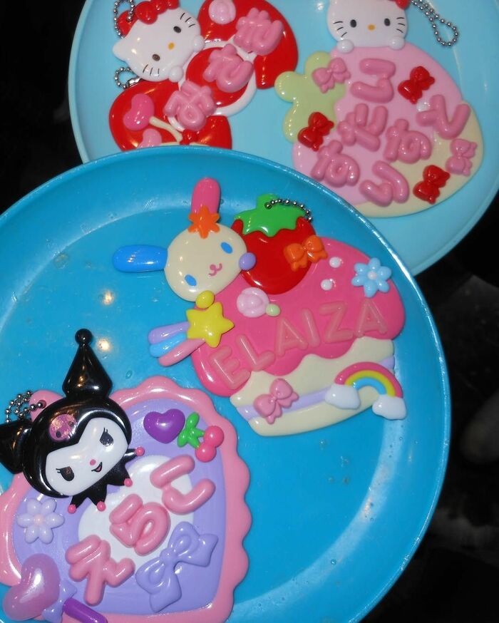 池田さんが制作したと思われるネームプレートも公開。クロミをベースとしたプレートの上に、ピンクの文字で「えらこ」と記されたものや、ウサハナのプレートには「ELAIZA」とデコレーションされたものまで!