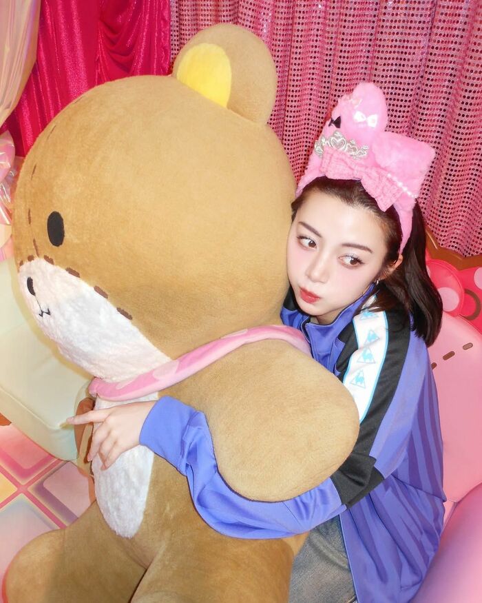 公開された写真には、マイメロディのカチューシャを付けた池田さんが、ぬいぐるみに抱きついている様子がおさめられています。頬を膨らませた表情で目線を外す池田さんと大きなぬいぐるみの組み合わせが、何ともキュート!