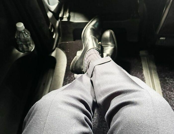 公開された写真には、卒業式を終えた後なのでしょうか、車内に座る團十郎さんの足元が写っていました。