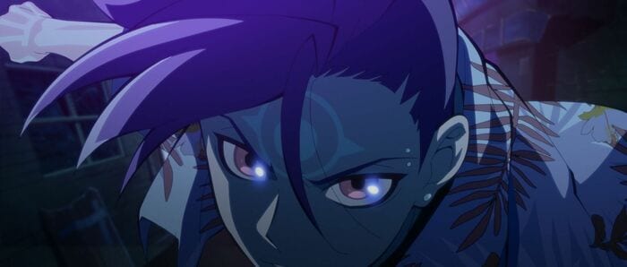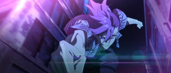 ネオンに光る街中で、建物を粉砕しながら激しく闘う梁⿓。その姿は、梁⿓を演じた内⼭さんが「戦闘スタイルが独特な戦い⽅だったのも印象的」と語るほど。