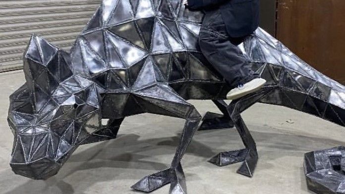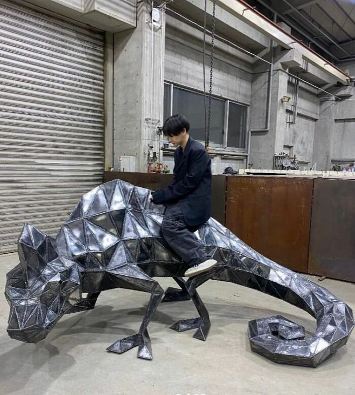 成人男性1人が乗ることができるほどの大きさの“巨大カメレオン”、素材は鉄でできていて、サイズは全長2m超え、重さはなんと200㎏!