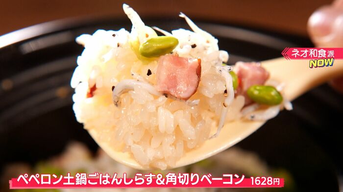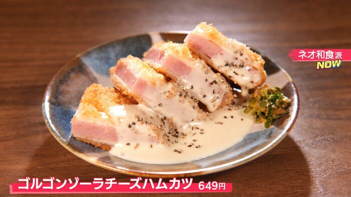 しらすや角切りベーコンなどの具材を入れて炊き上げたピリ辛の「ペペロン土鍋ご飯しらす&角切りベーコン(1628円)」や、「ゴルゴンゾーラチーズハムカツ(649円)」など、和食の枠にとらわれない斬新なメニューが並びます。