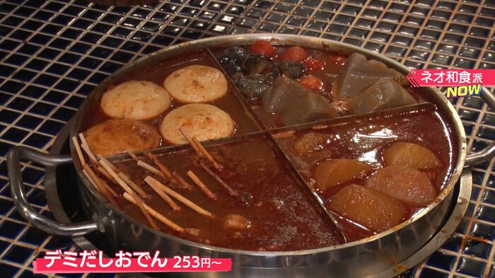 デミグラスとお味噌をミックスした味付けが相性抜群の「デミだしおでん(253円〜)」。