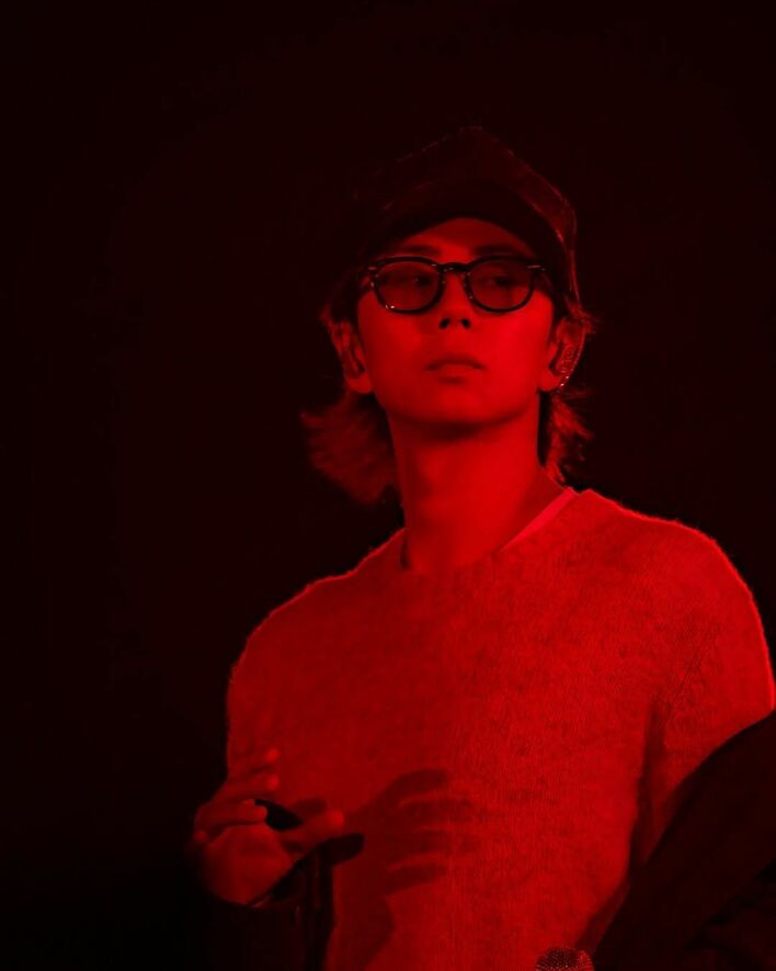 別の写真では、キャップを取り、会場を見渡しているような表情を見せているショットや…