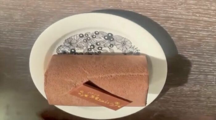 ロールケーキにのったチョコレートのプレートには「パパ 卒業おめでとう」と書かれています。