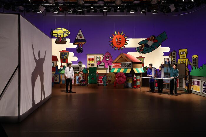 出題側4人と解答側3人に分かれ、お題となる漢字1文字をシルエットで伝えます。