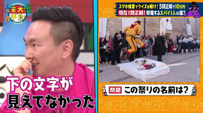 山内さんが「伝える人」、若槻さんが「検索する人」のターンで、写真とともに「この祭りの名前は?」という問題が出題されると…。