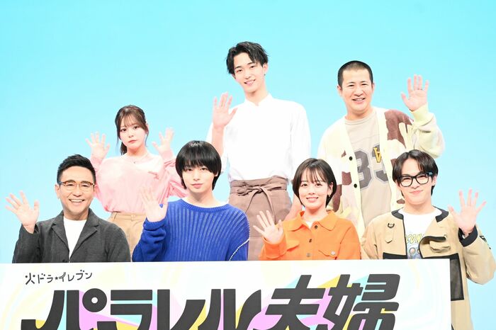 火ドラ★イレブン『パラレル夫婦 死んだ“僕と妻”の真実』の制作発表が3月25日に行われ、W主演を務める伊野尾慧さんと伊原六花さん、松倉海斗さん、野村康太さん、齊藤なぎささん、きょん(コットン)さん、八嶋智人さんが登壇しました。
