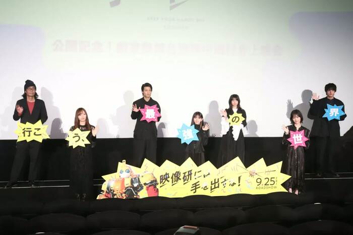 9月24日(木)、映画「映像研には手を出すな!」の映画公開記念 前夜祭舞台挨拶が開催され、乃木坂46の齋藤飛鳥、山下美月、梅澤美波、共演の桜田ひより、板垣瑞生、赤楚衛二、本作のメガホンをとった英勉監督が出席した。